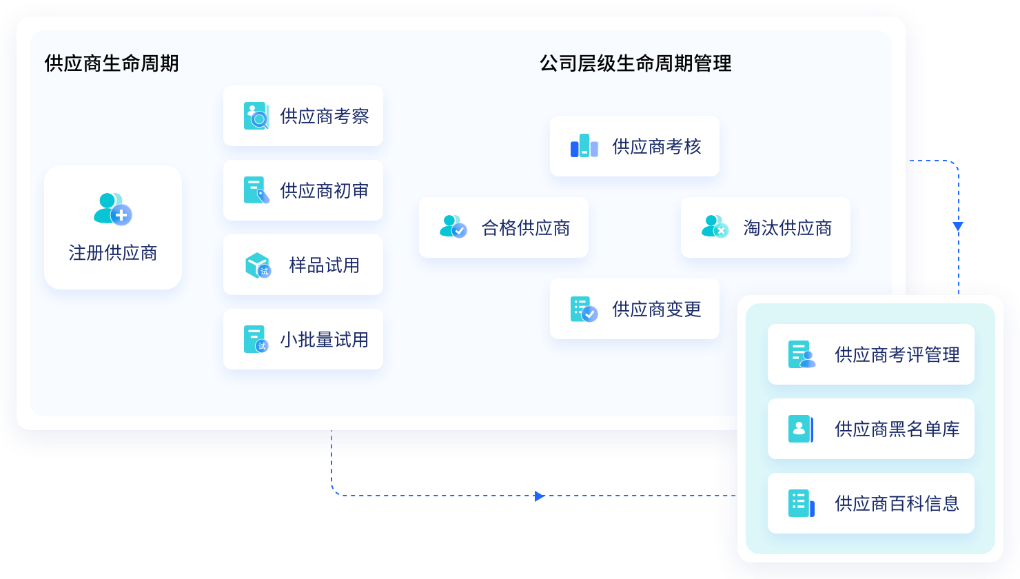 助力企业实现供应商全生命周期管理,从需求到寻源、订单到对账开票覆盖整体采购业务流程,全面提升供应效率降低采购成本。